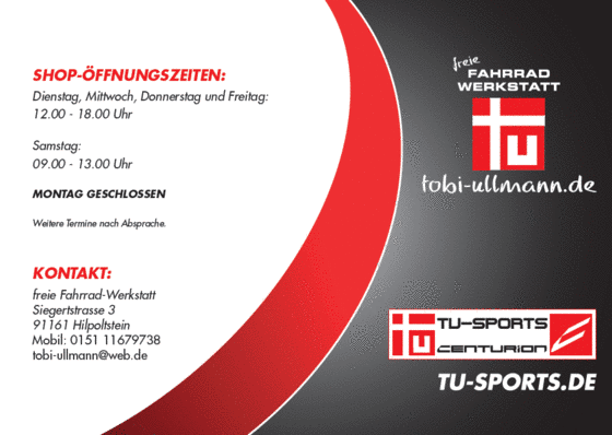 Zusätzlich zu seiner Selbstständigkeit als Inhaber der Fahrradwerkstatt, ist Tobias Ullmann auch Teamchef und Kapitän des Mountainbike-Teams „TEAM WILIER TU-SPORTS“. Die sechsköpfige Equipe um Tobias Ullmann setzt sich im bayerischen Rennsport durch und fördert junge Rennfahrer aus der Umgebung, um ihnen ein professionelles Umfeld zu bieten. Aus der Radmannschaft wird ebenfalls der Neumarkter Florian Schön, 23 Jahre, vom Professional Endurance Team betreut.